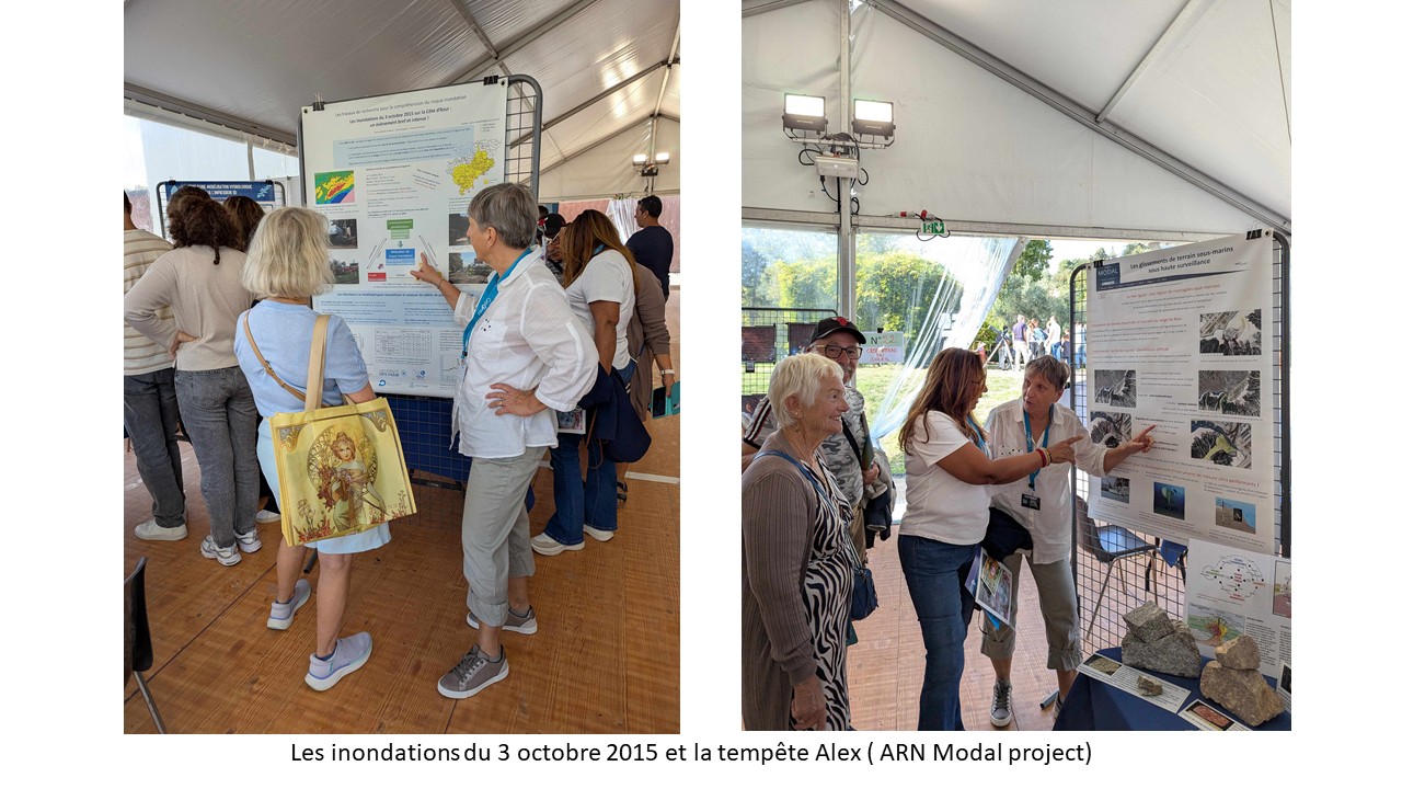 Le week-end grand public du 4 et 5 octobre avec un stand « minéralogie – télémétrie laser – hydrologie (avec les étudiants du master « hydroprotech » encadrés par Rémi Madelbos, Medhi El Zimaoui, doctorants et Morgan Abily) ainsi que des panneaux illustrant les inondations du 3 octobre 2015 et la tempête Alex (projet ANR Modal) avec Corinne Nicolas-Cabane.