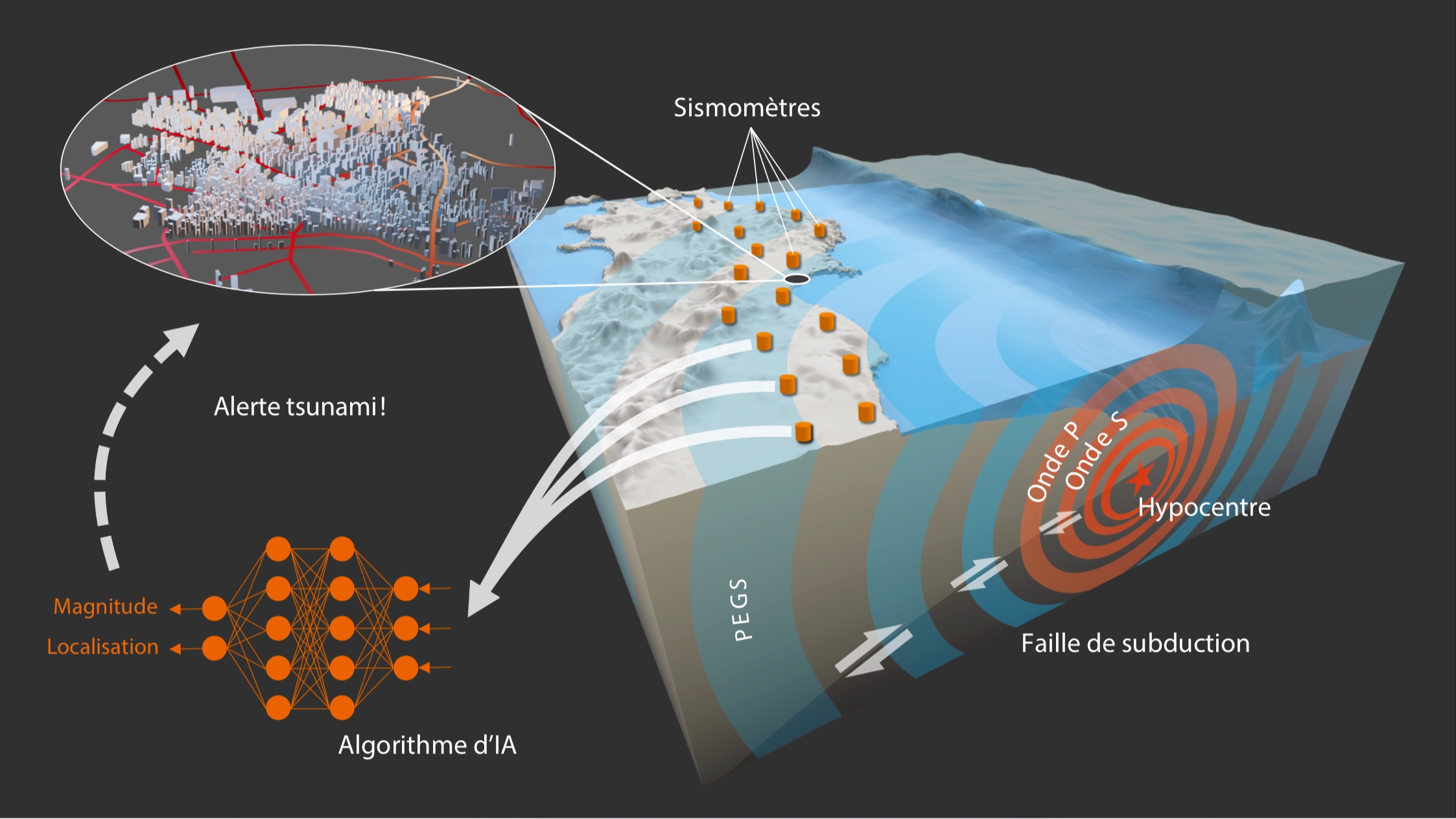 Quentin Bletery a présenté l'état de l'art sur les systèmes d’alerte sismique et tsunami à l’ère de l’IA. Les travaux en cours visent à mieux distinguer rapidement la magnitude et la nature des séismes, un enjeu clé pour l’alerte tsunami. De nouveaux algorithmes, intégrant notamment des signaux gravitationnels, permettent d’affiner les estimations dès les premières secondes.
