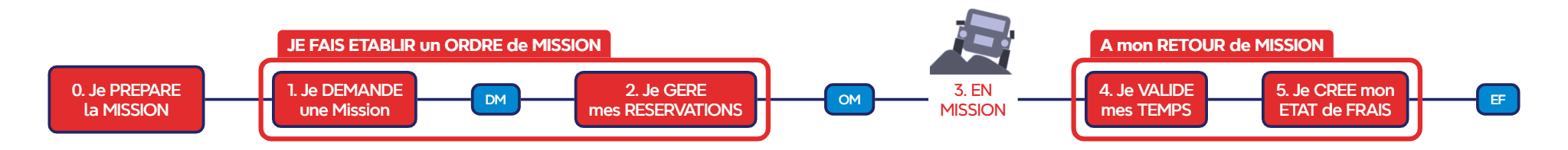 Vous pouvez également consulter le processus complet, détaillé dans un schéma récapitulant les points à ne pas manquer et permettant de comprendre les interactions entre vous qui partez en mission, et le Service Administratif qui vérifie et valide à plusieurs étapes du processus :